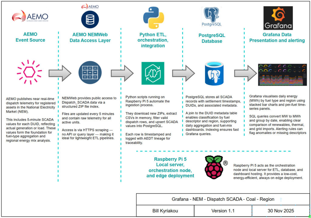 • ETL: Python script (GetStore_Dispatch_SCADA.py) running on Raspberry Pi 5