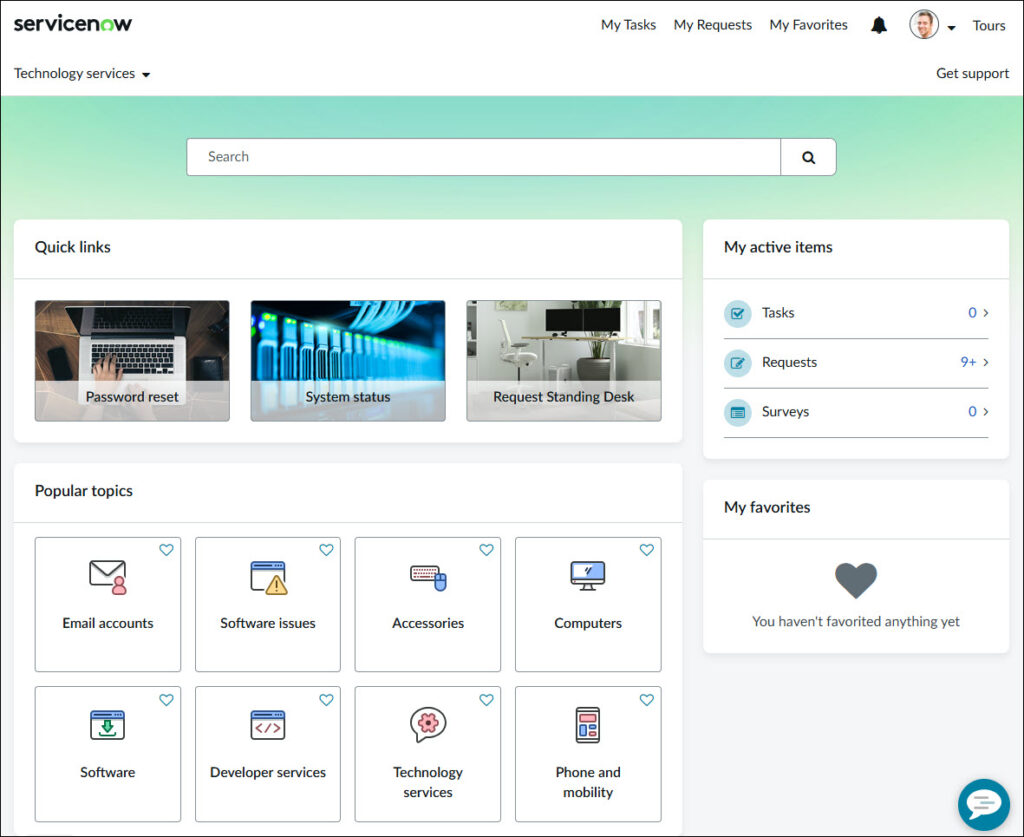 To access the Employee Center (formally Employee Service Center) go to your development environment and append “esc” to the URL. For example, my development environment is here: https://dev181488.service-now.com/esc Note, this page won’t open unless the credentials are entered.