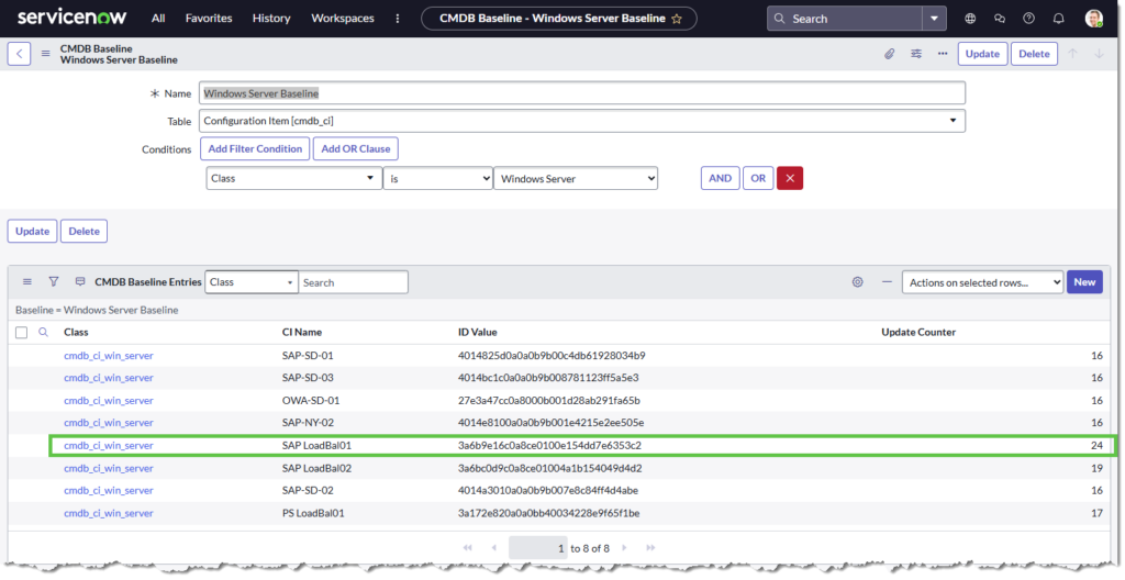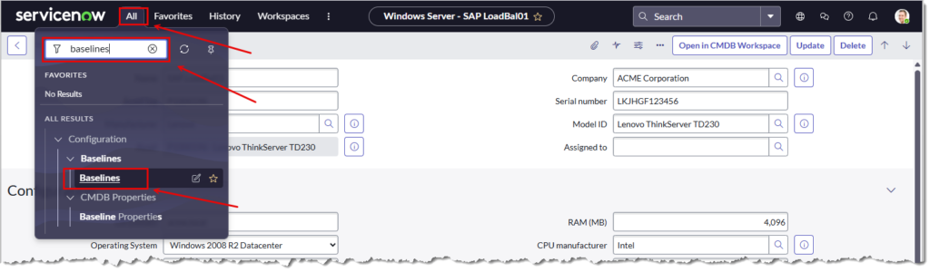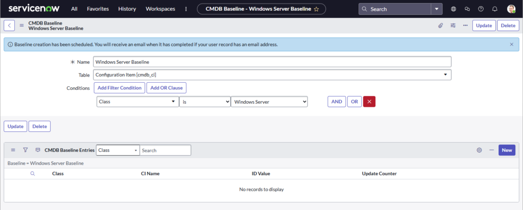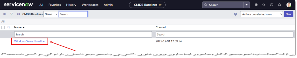 Go back to the “Baselines” page. In the “ServiceNow: heading
